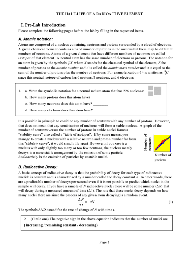 THE HALFTIME OF A RADIOACTIVE ELEMENTS. PreLab Introduction