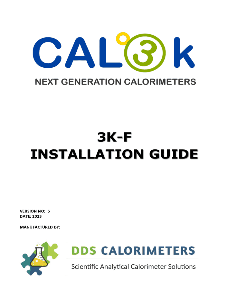 3KF INSTALLATION GUIDEVERSION NO: 6 DATE: 2023 MANUFACTURED BY:Digital Data Systems (Pty) Ltd. CAL3K Advanced Bomb Calorimeters www.ddscalorimeters.comTable of Contents: 12345678INTRODUCTION ....................................................................................................................