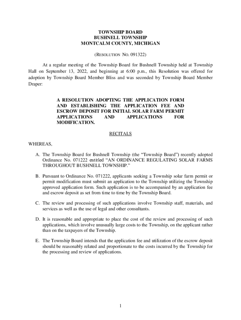Get the free Bushnell Township Solar Application Resolution(00145328.DOCX;1). 19633-001-00145328....