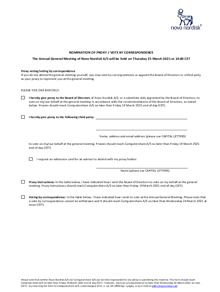 Get the free Novo Nordisk : Proxy / voting by correspondence form