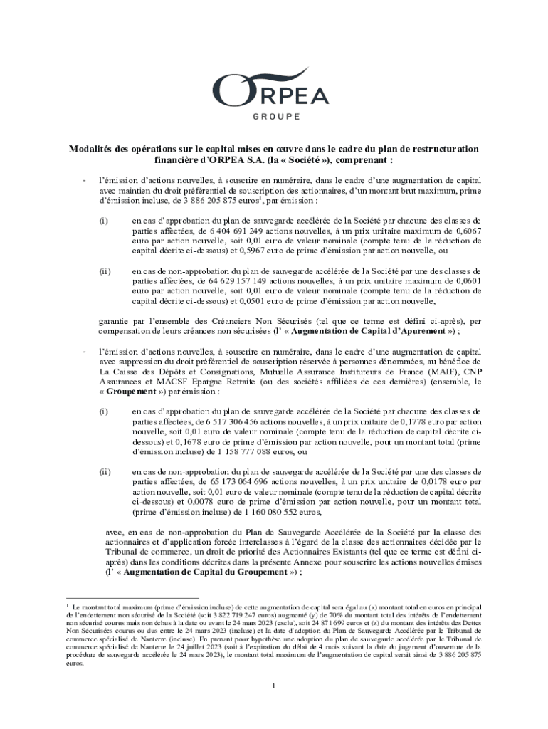 Modality DES operations SUR LE capital mises' en URE days LE cadre Du plan de structuration