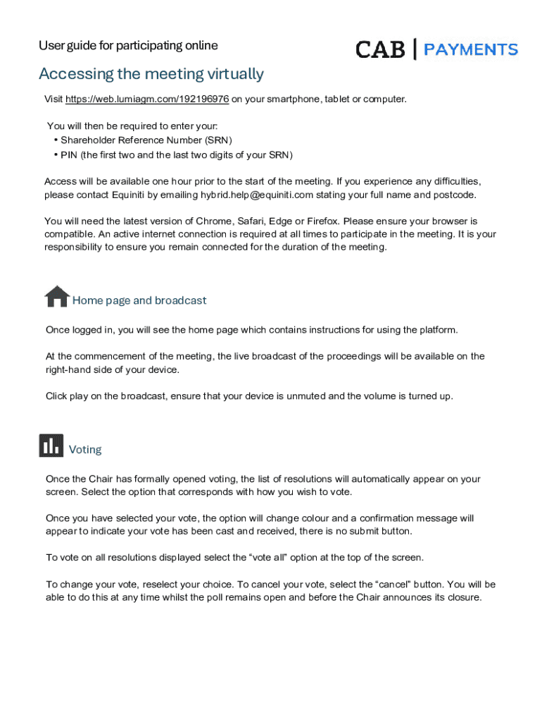 Visit https://web.lumiagm.com/192196976 on your smartphone, tablet or computer.