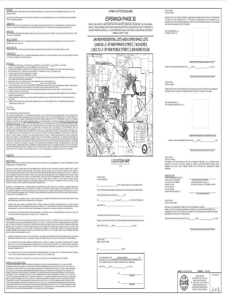 DRAINAGE EASEMENTS. A FINAL PLAT ESTABLISHINGESPERANZA
