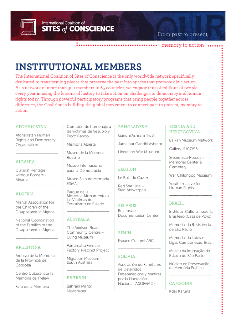 memory to actionINSTITUTIONAL Members International Coalition of Sites of Conscience is the only worldwide network specifically