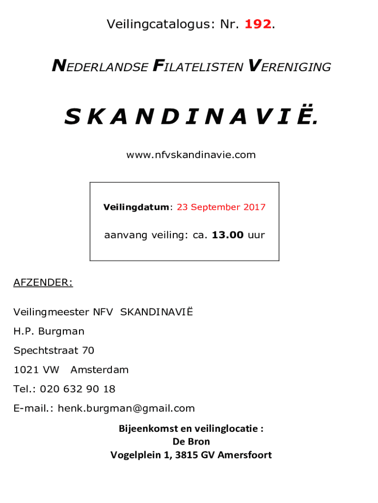 www.nfvskandinavie.comVeilingdatum: 23 September 2017aanvang veiling: ca. 13.00 uurAFZENDER: