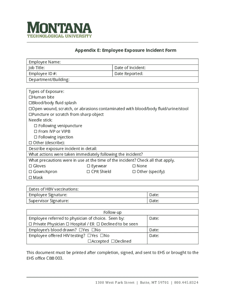 The form usually requires the individual to provide their personal information, details of the exposure incident, the type of infectious material involved, and any actions taken following the exposure.