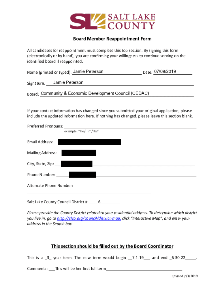 Board Member Reappointment Form