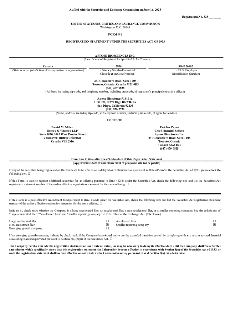 As filed with the Securities and Exchange Commission on June 16, 2023 Registration No. 333___ UNITED STATES SECURITIES AND EXCHANGE COMMISSION Washington, D.C. 20549 FORM S1 REGISTRATION STATEMENT