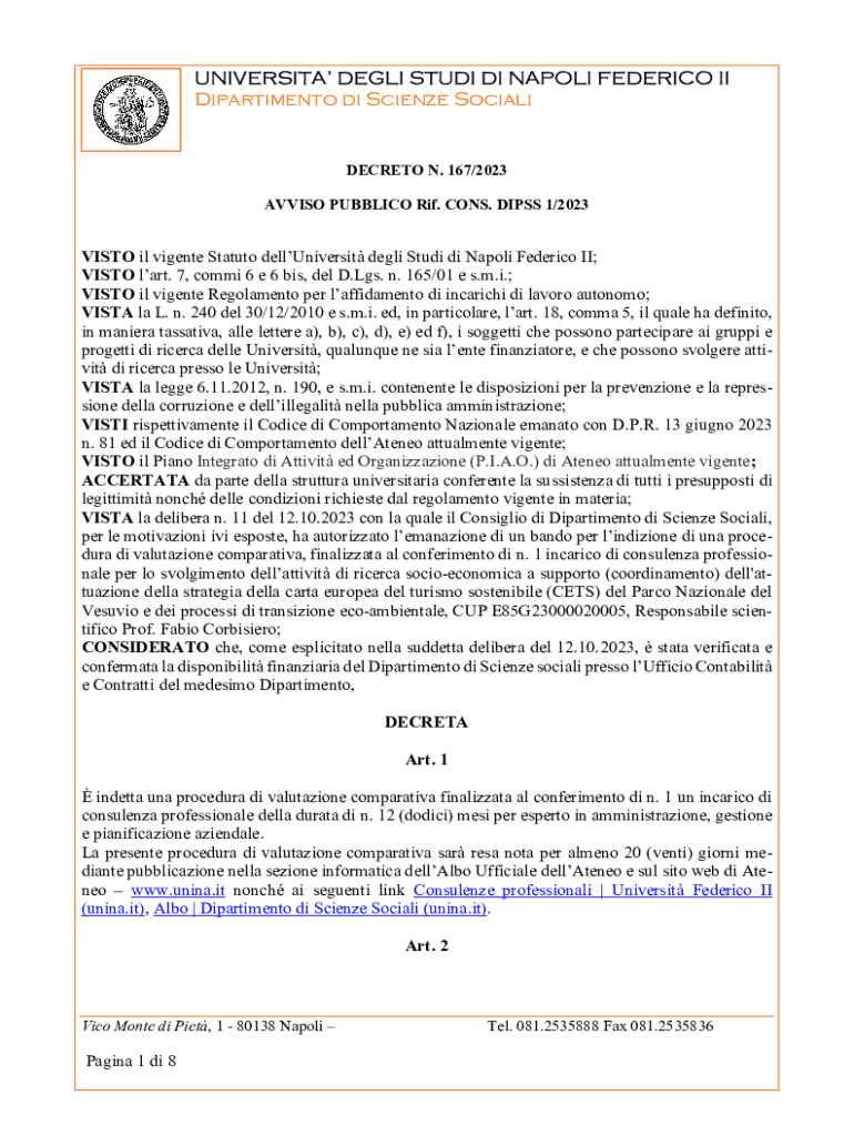 AVV ISO PUBLIC RIF. CONS. DIPS 1/2023VISTO IL Vicente Statute dellUniversit deli Studio di Naomi Federico