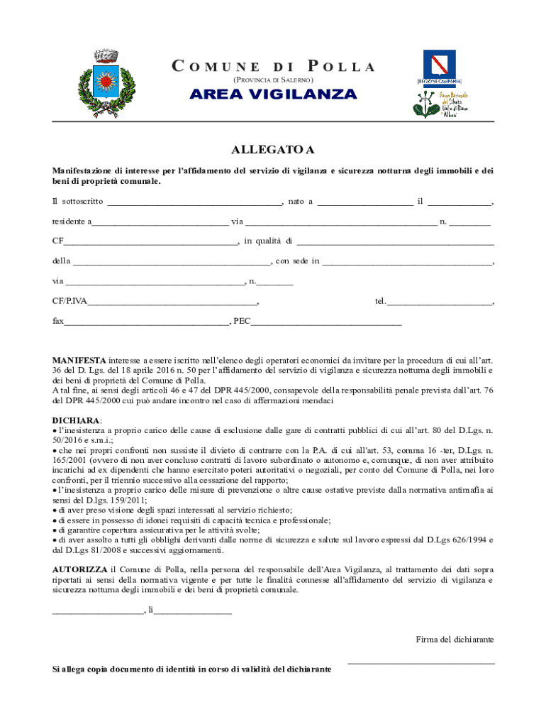 COMUNEDIPOLLA(PROVINCIAL DI SALERNO)AREA VIGILANZAALLEGATO A