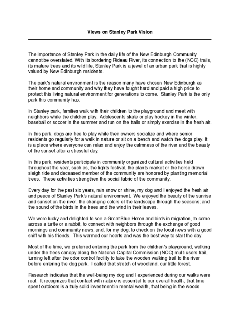 The importance of Stanley Park in the daily life of the New Edinburgh Community