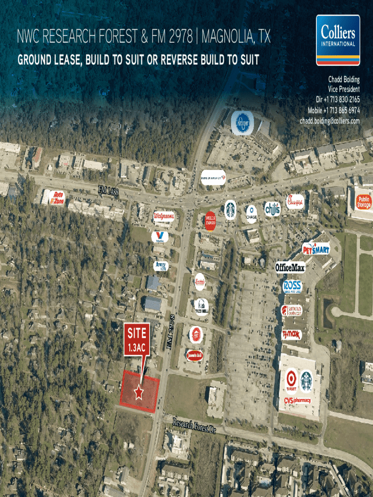 NWC RESEARCH FOREST & FM 2978 | MAGNOLIA, TX GROUND LEASE, BUILD TO SUIT OR REVERSE BUILD TO SUIT Chadd Bolding Vice President Dir +1 713 830 2165 Mobile +1 713 865 6974 chadd.bolding@colliers.com1.3ACFM