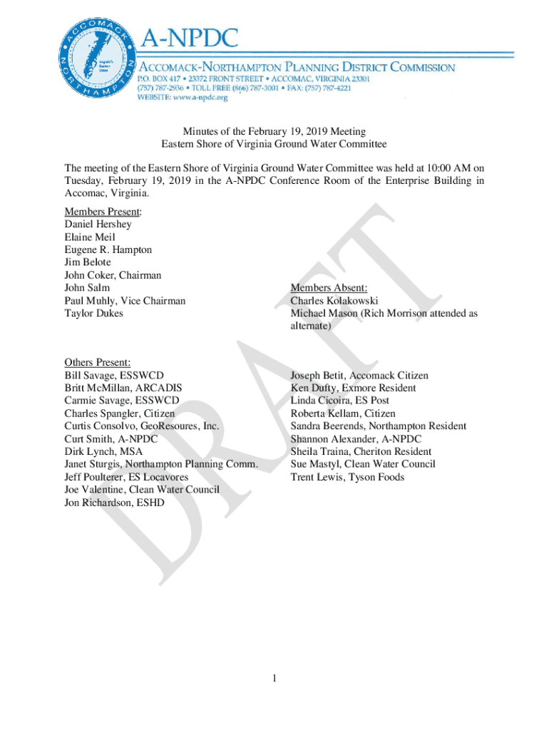 Get the free 1 Eastern Shore of Virginia Ground Water Committee March 16, ...