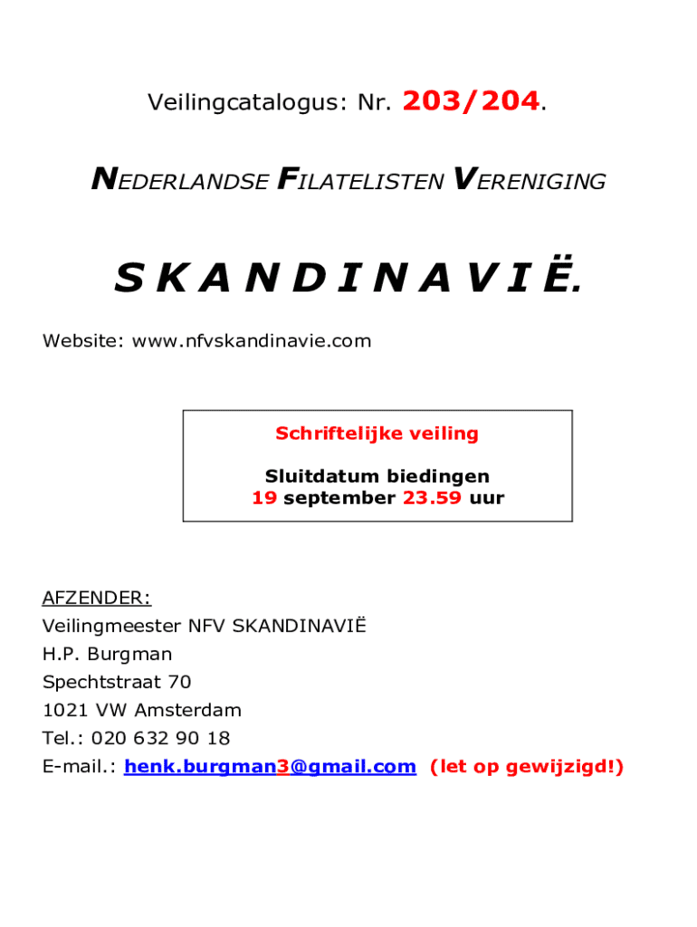 Website: www.nfvskandinavie.comSchriftelijke veiling