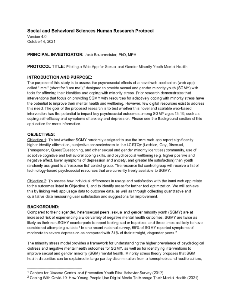 October14, 2021PRINCIPAL INVESTIGATOR: Jo's Bauermeister, PhD, MPH