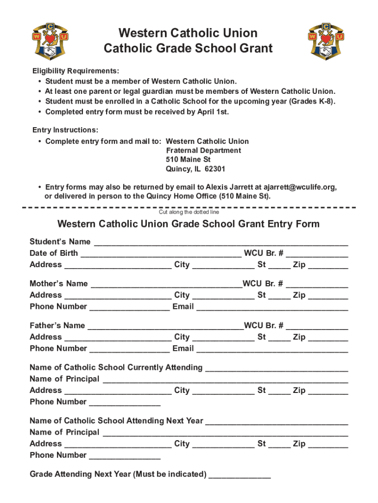 Student must be a member of Western Catholic Union.