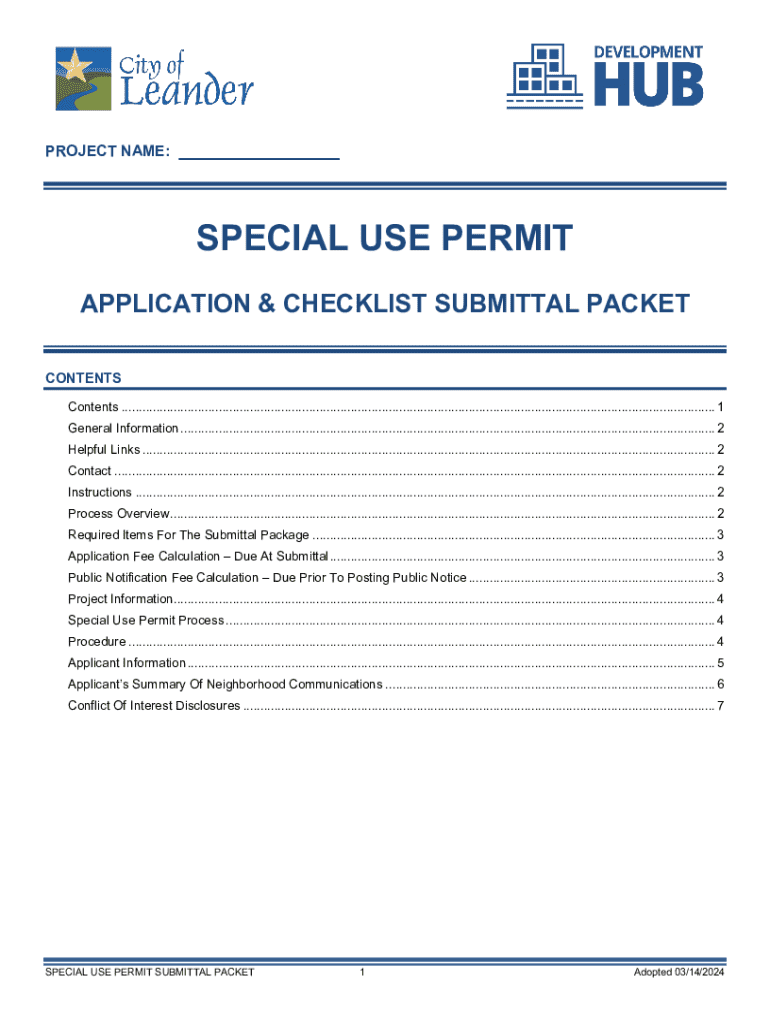 PROJECT NAME:SPECIAL USE PERMIT APPLICATION & CHECKLIST SUBMITTAL PACKET CONTENTS Contents ...........................................................................................................................................................................