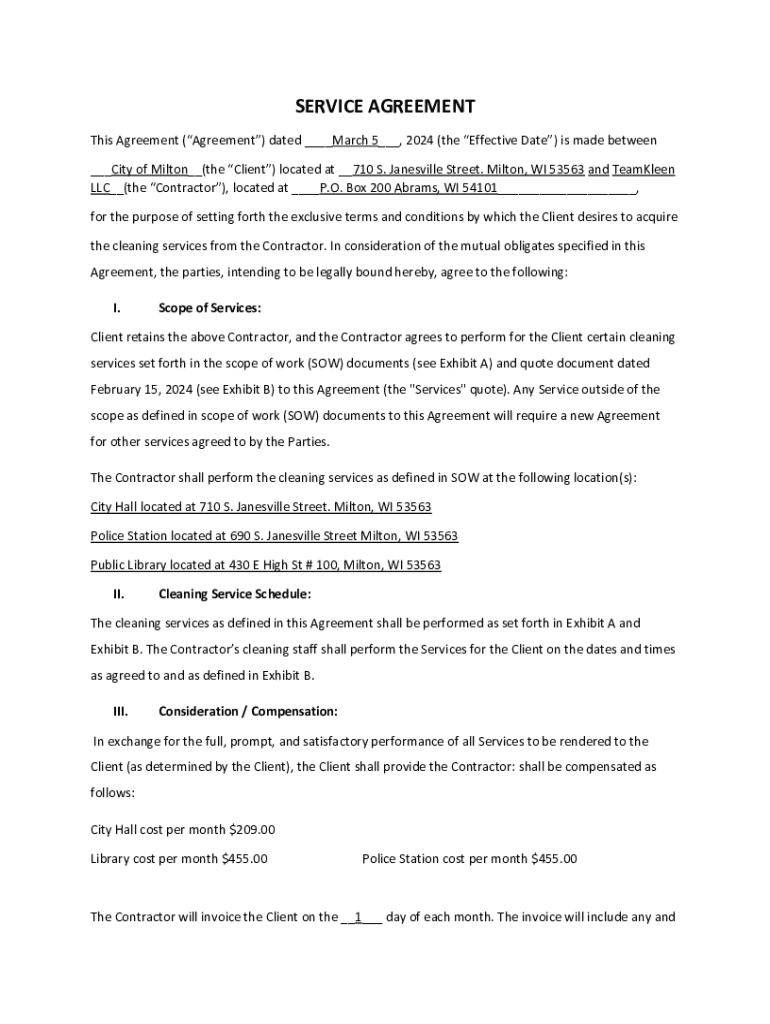 ___City of Milton__(the Client) located at __710 S. Janesville Street. Milton, WI 53563