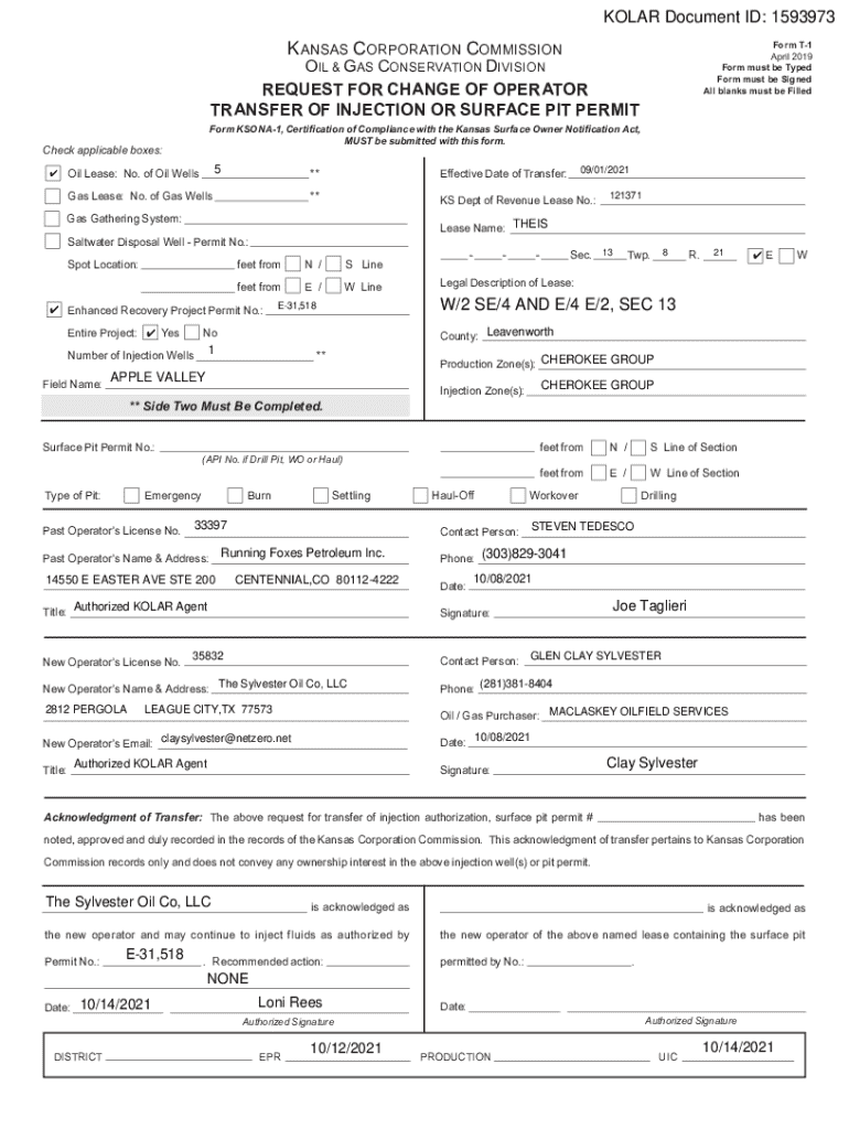 SOLAR Document ID: 1593973K KANSAS CORPORATION Commissioner T1
