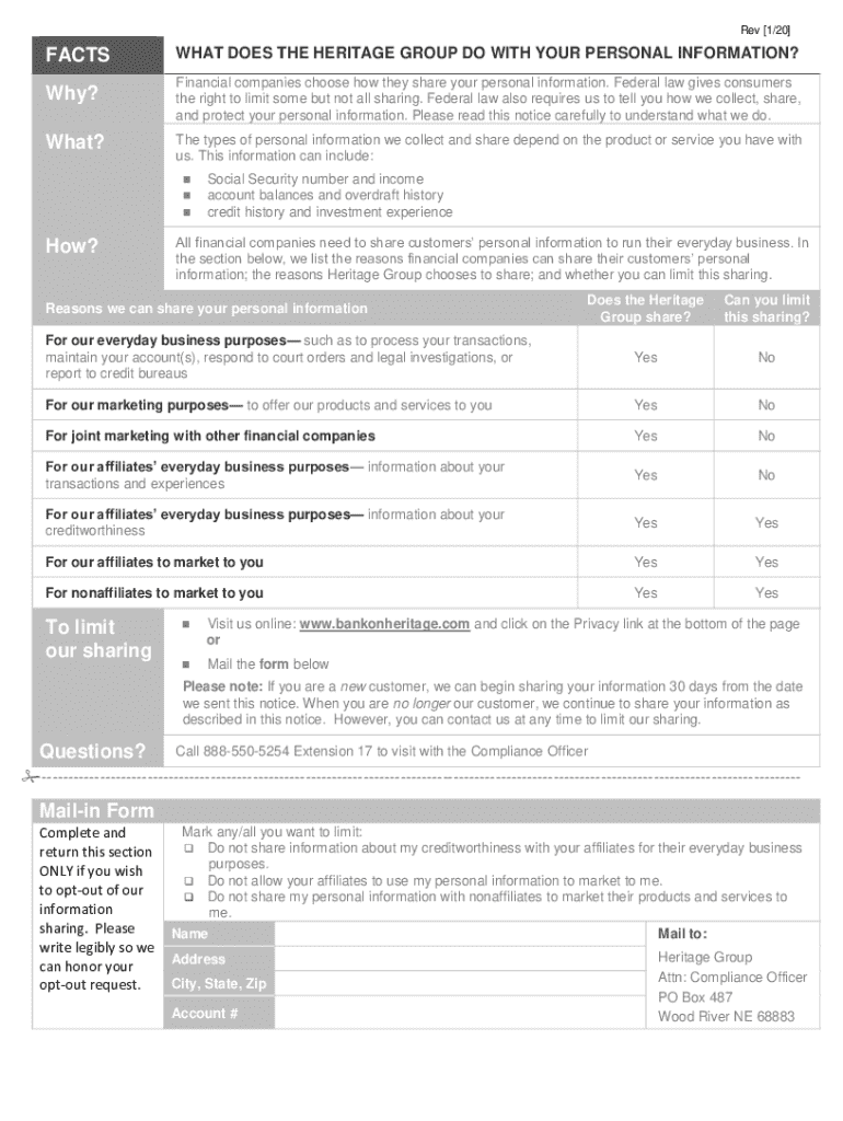 Rev [1/20]FACTSET DOES THE HERITAGE GROUP DO WITH YOUR PERSONAL INFORMATION? Why? Financial companies choose how they share your personal information. Federal law gives consumers