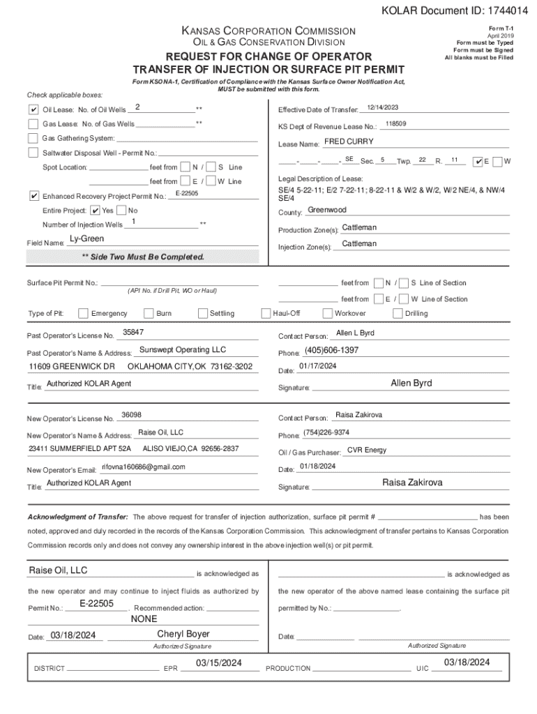 SOLAR Document ID: 1744014K KANSAS CORPORATION Commissioner T1