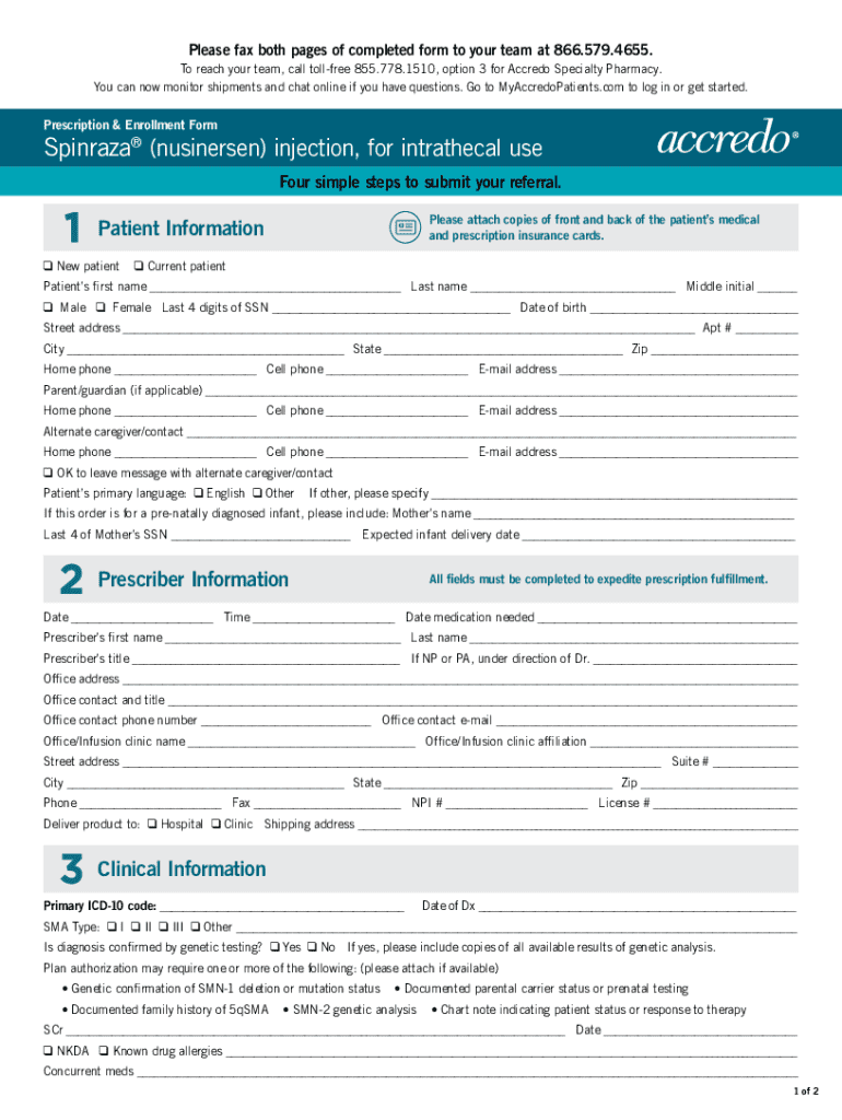 Get the free Prescription & Enrollment Form Spinraza (nusinersen) injection, for intrathecal ...