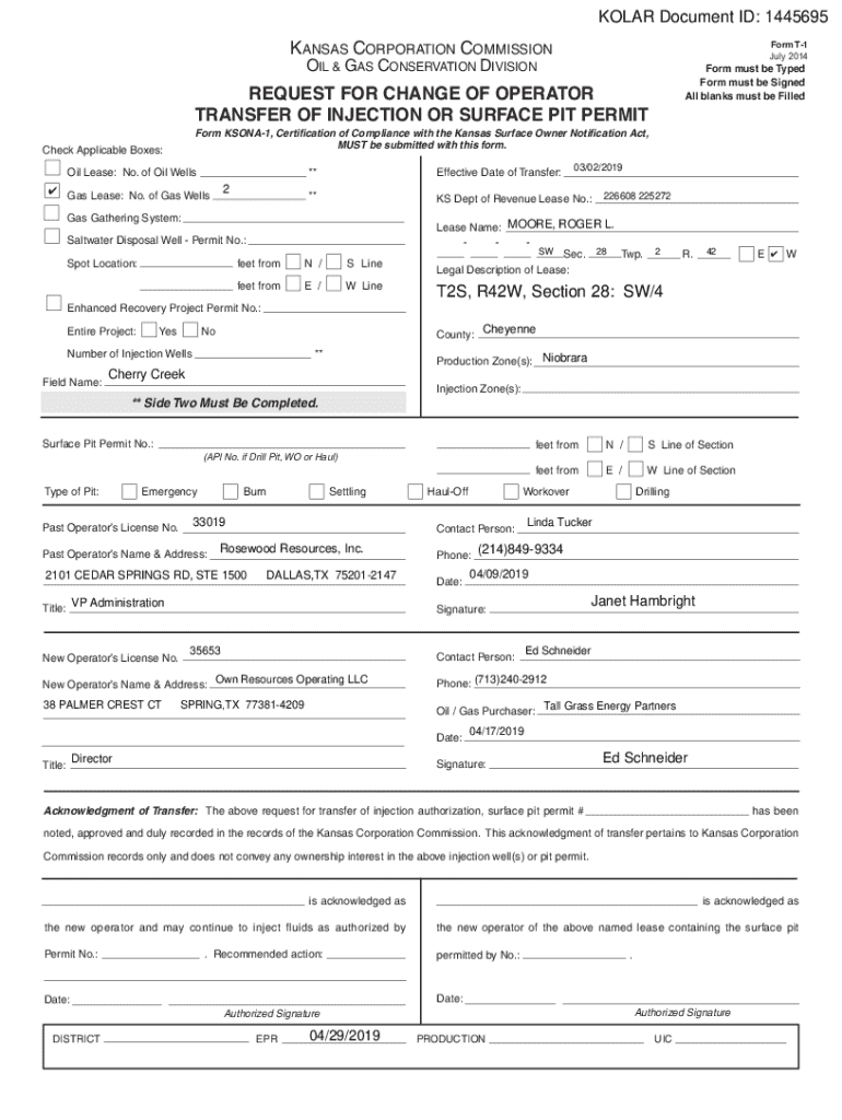 All blanks must be FilledREQUEST FOR CHANGE OF OPERATOR