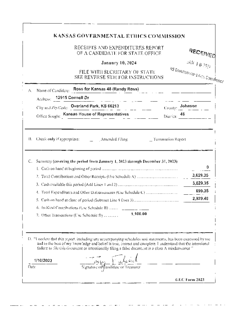 Get the free receipts and expenditures report of a candida te for state ... - ethics ks