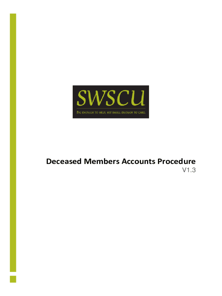 Deceased Members Accounts Procedure V1.3Table of Amendments DateNotes15/01/2020Inclusion of requirement for cheques made out to the Estate of the Late Pg. 6 Updated DB Legal Procedure for Dealing
