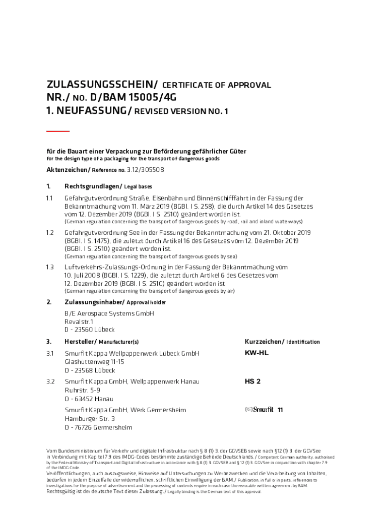 1. NEUFASSUNG/ REVISED VERSION NO. 1fr die Apart anger Repacking our Bordering gefhrlicher GTE