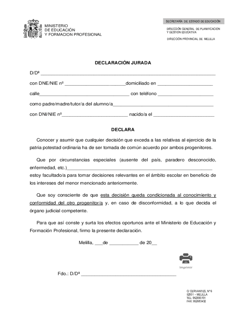 DIRECTION PROVINCIAL DE MELILLADECLARACIN JURADO