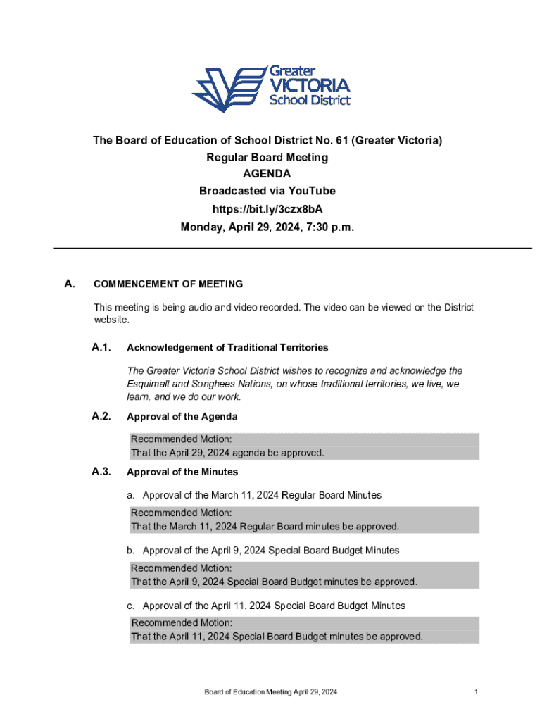 Monday, April 29, 2024, 7:30 p.m.A.COMMENCEMENT OF MEETING
