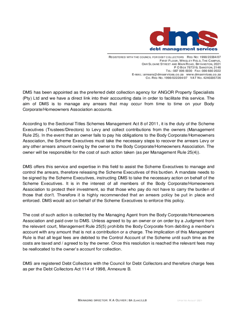 Get the free DMS has been appointed as the preferred debt collection ...