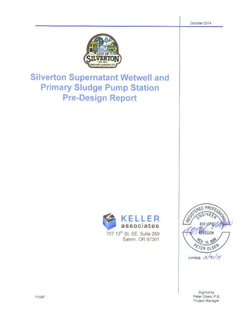 City of SilvertonSupernatant Wetwell and Primary Sludge Pump StationThis page is intentionally left blank214087iiCity of SilvertonSupernatant Wetwell and Primary Sludge Pump StationTable of Contents