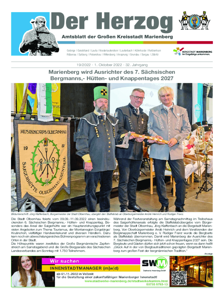 Renal | Strung | Pobershau | Wittenberg | An sprung | Grundy | Organ | Zblitz19/2022 1. October 2022 32. JahrgangMarienberg