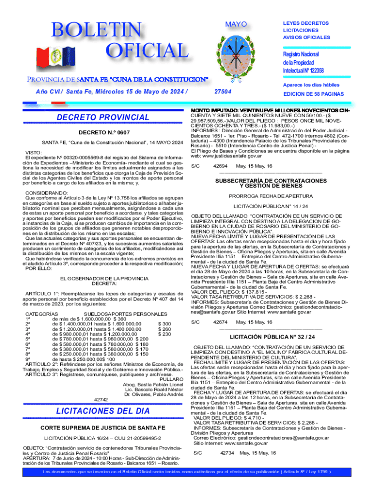 BOLETIN OFICIALMAYO+++++++++++++++++++++++++++++++++++++++++++++++++++++++++++++++++++++++++++++++++++++++++++++++++++++PROVINCIA DE SANTA FE CUNA DE LA CONSTITUCION Ao CVI / Santa Fe, Mircoles 15