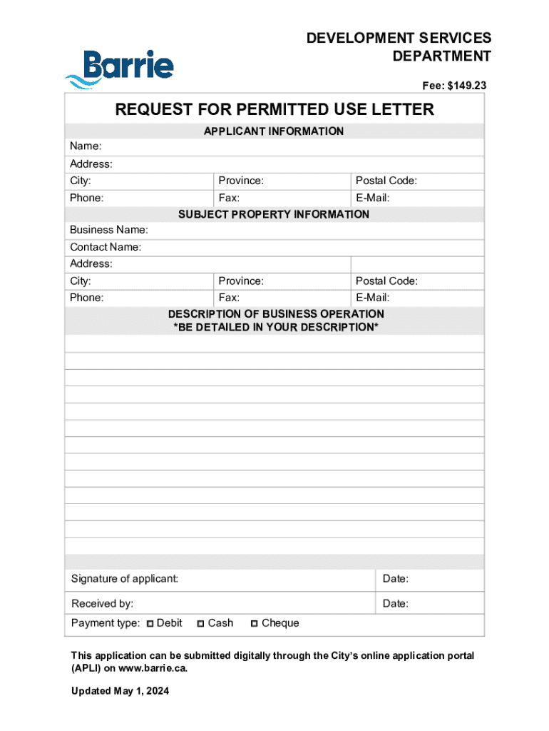 Fee: $149.23REQUEST FOR PERMITTED USE LETTER