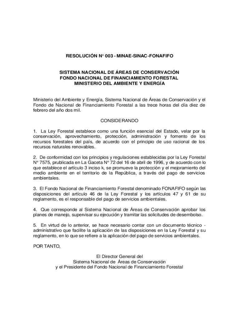 RESOLUTION N 003 MINAESINAC FONAFIFOSISTEMA NATIONAL DE AREAS DE CONSERVATION