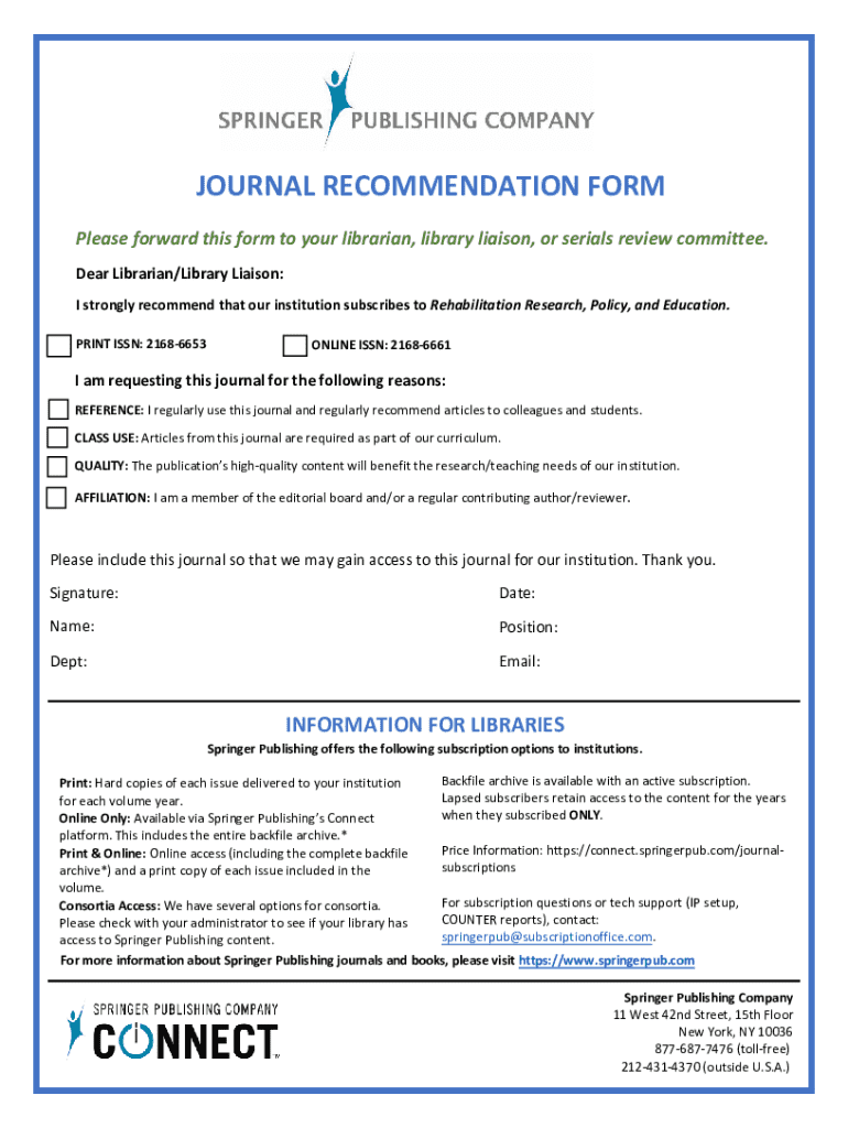 Please forward this form to your librarian, library liaison, or serials review committee.