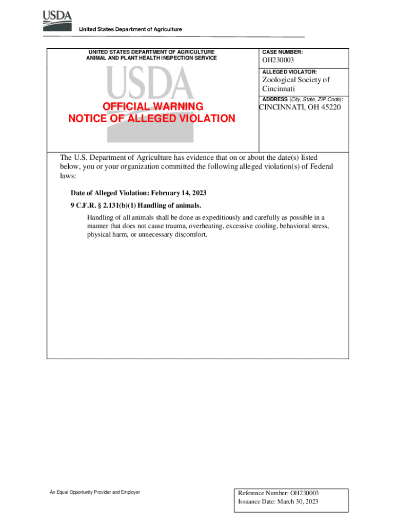 ANIMAL AND PLANT HEALTH INSPECTION SERVICE CASE NUMBER:OH230003