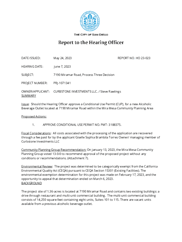 Get the free June 7, 2023 SUBJECT: 7190 Miramar Road, Process Three Decision