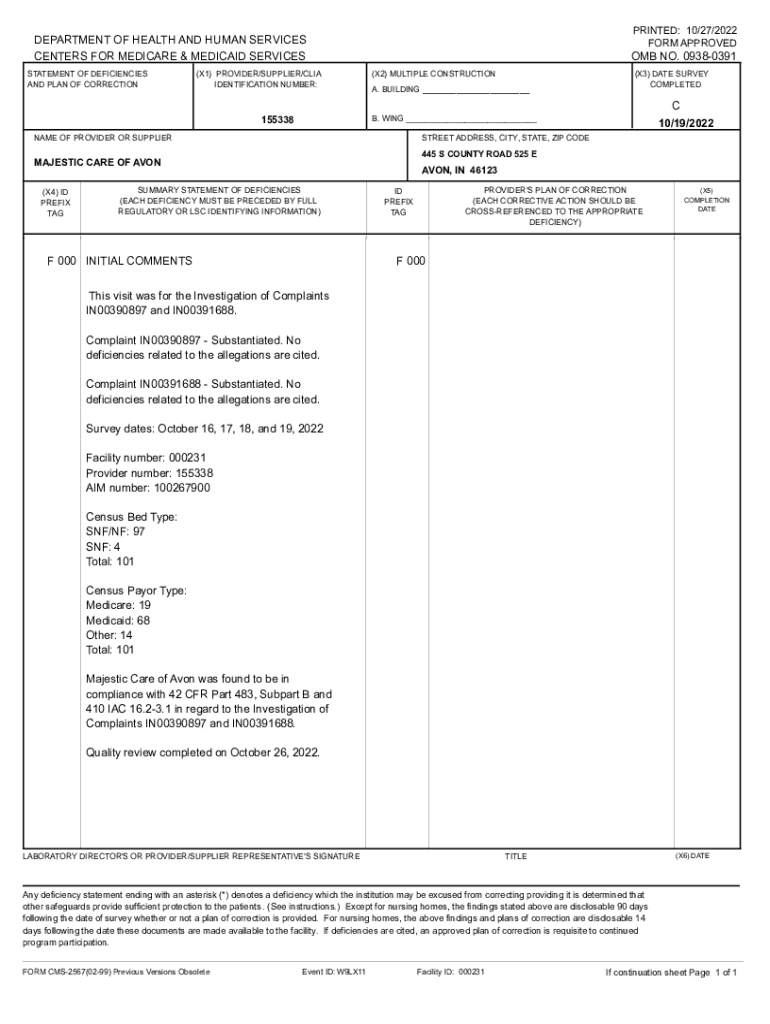 AND PLAN OF CORRECTION(X1) PROVIDER/SUPPLIER/CIA