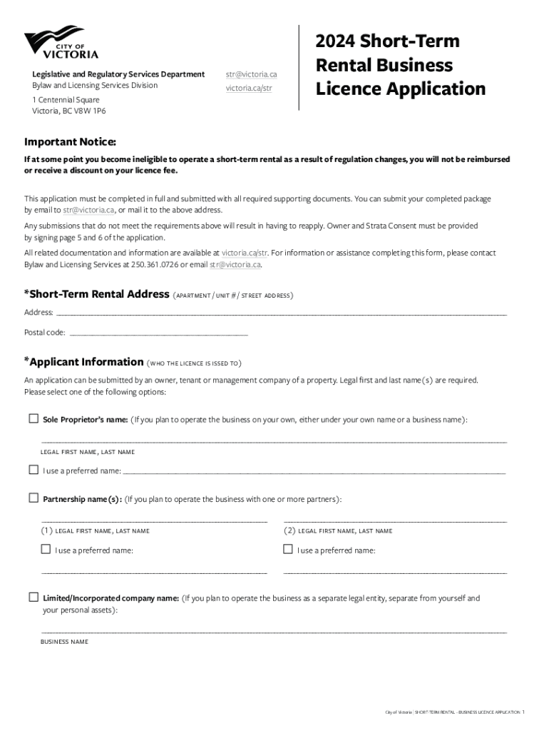 Get the free Business Licence Application - Short-Term Rental