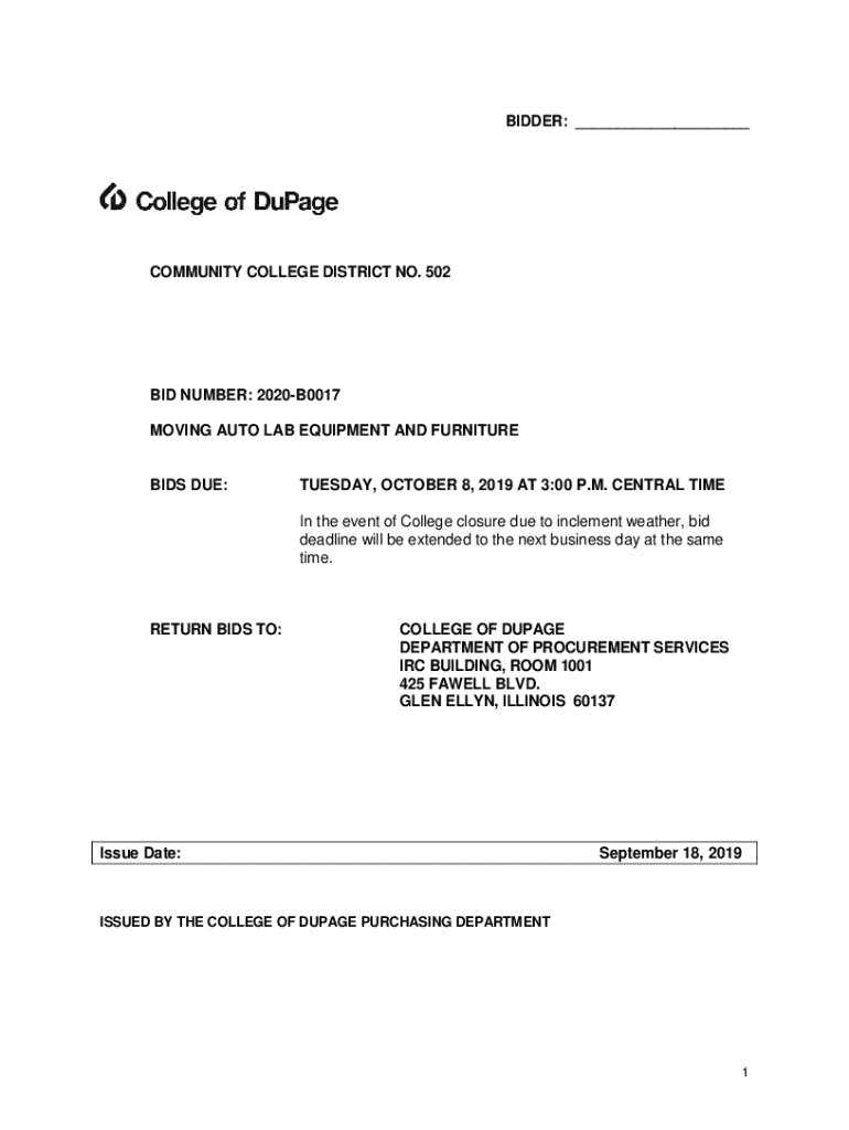 BIDDER: ___COMMUNITY COLLEGE DISTRICT NO. 502BID NUMBER: 2020B0017
