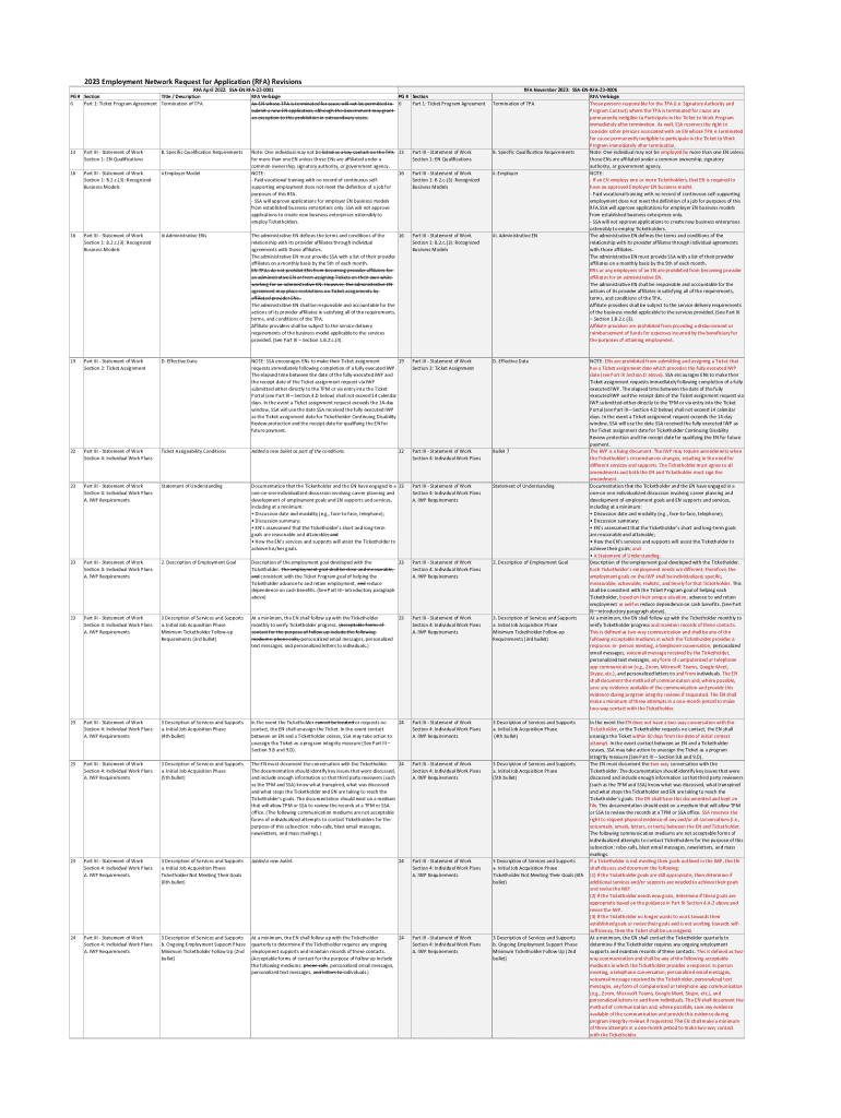 Get the free 2023 Employment Network Request for Application (RFA) Revisions