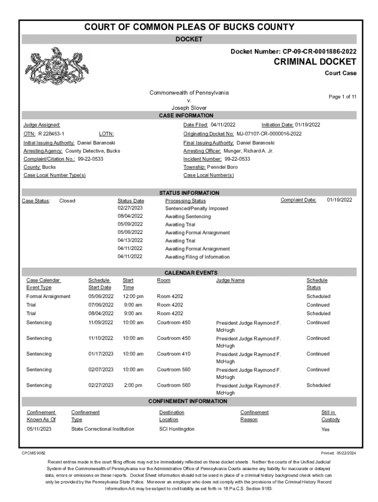 DOCKET Number: CP09CR00018862022CRIMINAL DOCKET