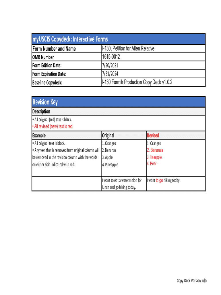 Baseline Copy deck:I130, Petition for Alien Relative