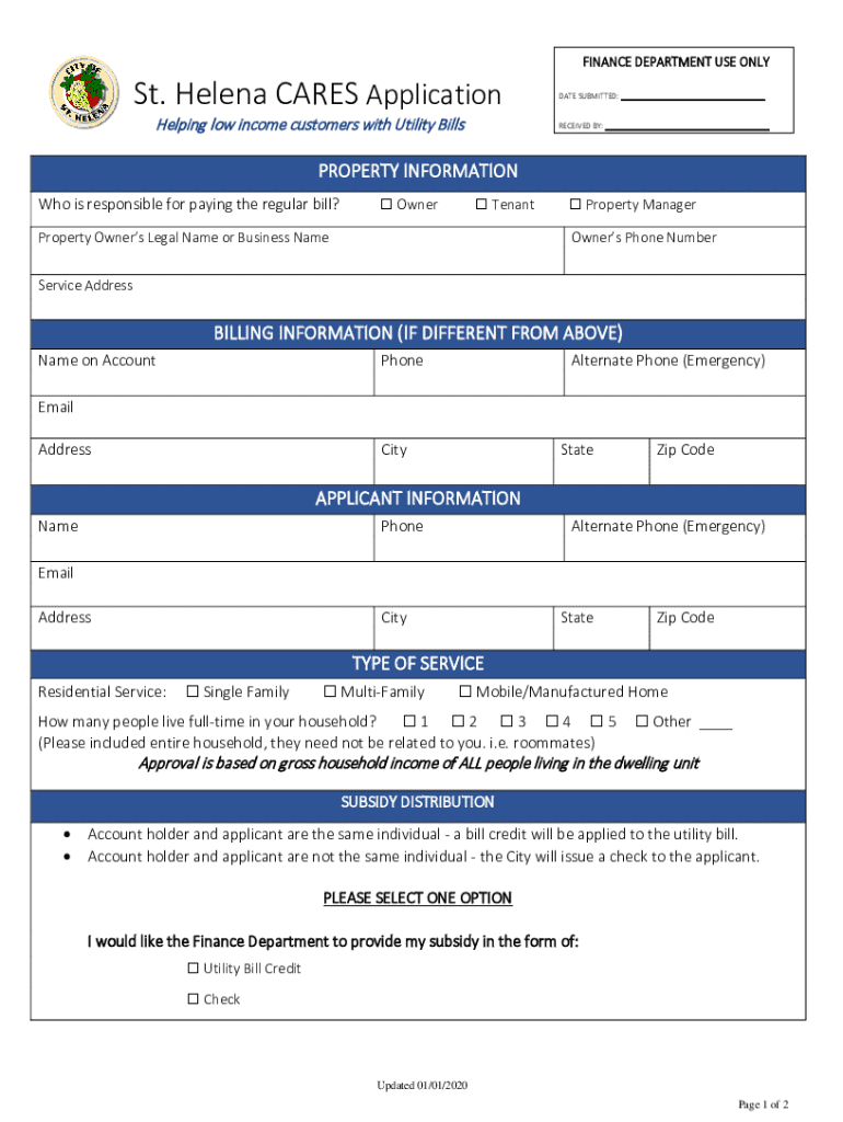 The City of St. Helena offers a 50% percent reduction on base rates to eligible customers on their Utility