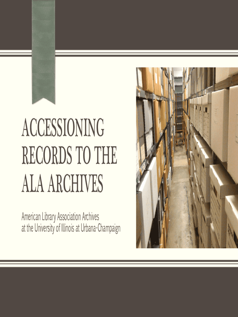 ACCESSIONING RECORDS TO THE ALA ARCHIVES American Library Association Archives at the University of Illinois at UrbanaChampaignWHAT IS THE ALA ARCHIVES? The ALA Archives is a program of the University