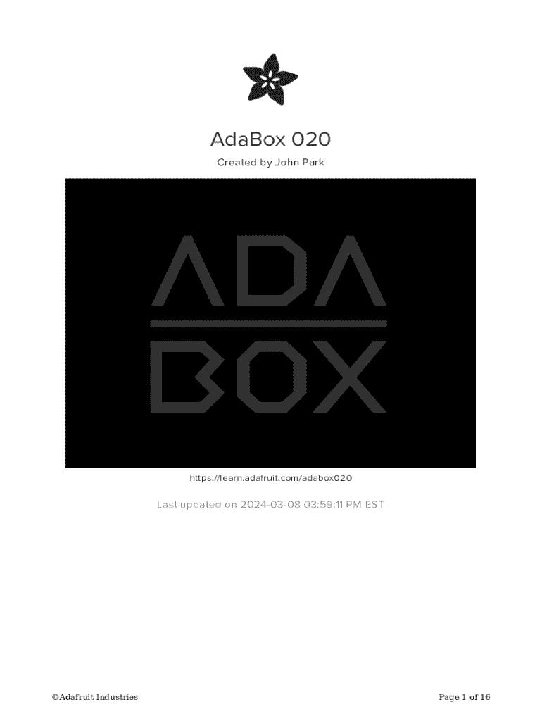 Created by John Parkhttps://learn.adafruit.com/adabox020Last updated on 20240308 03:59:11 PM Starfruit Industries Page 1 of 16Table of Contents